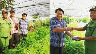 Penyerahan bibit Indigofera 'Legum Kekinian' oleh Koordinator Pengawas Mutu Pakan BPTU-HPT Denpasar (Maskur, S.pt) ke I Made Londra, S.Pt, MP, perwakilan dari BPTP Bali.